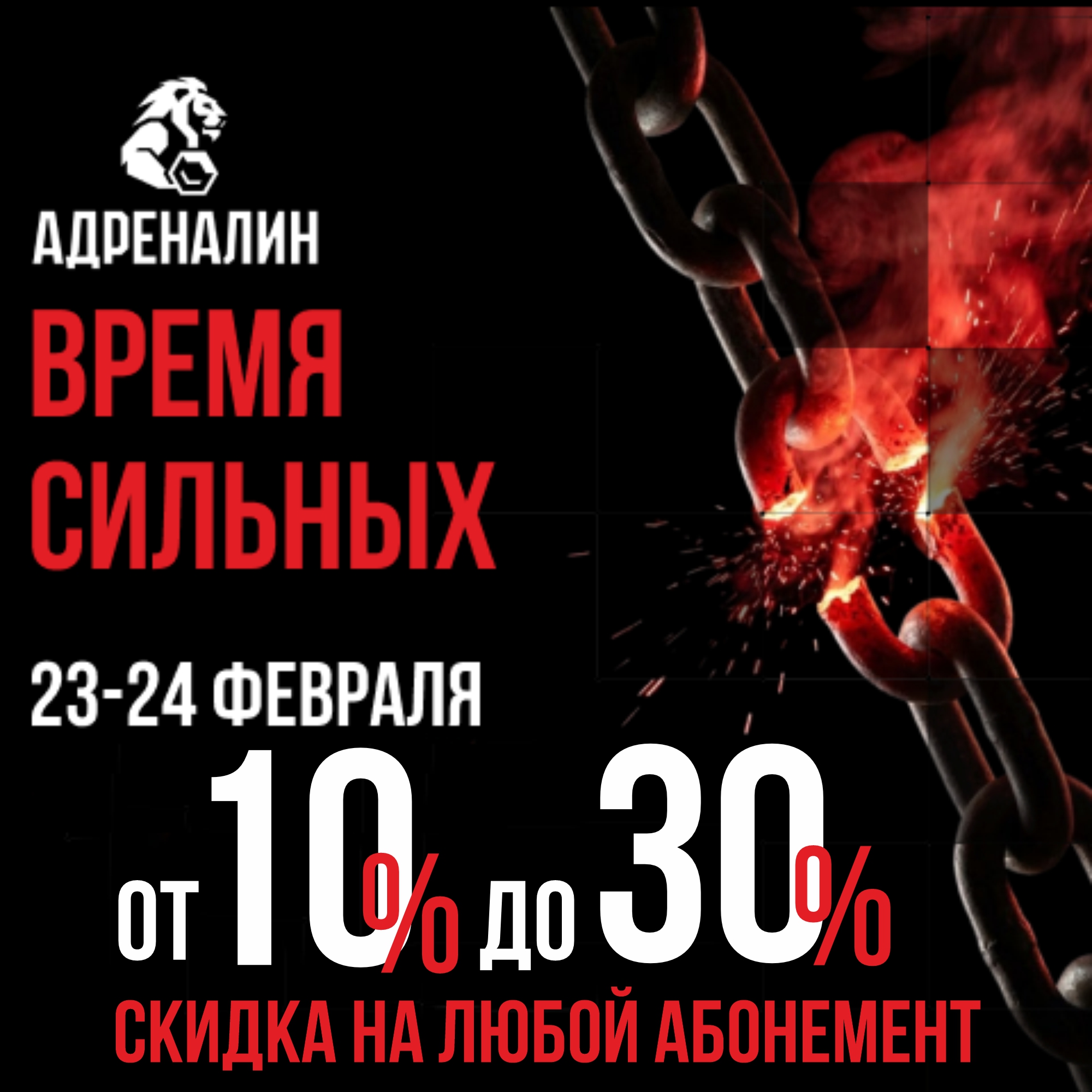 В честь 23 февраля только 23 и 24 февраля объявляем розыгрыш скидок для всех мужчин посетителей нашего клуба.
