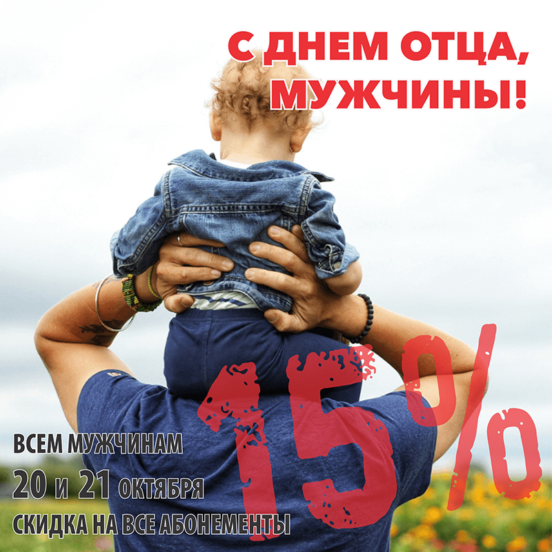 Клуб Адреналин Победителей поздравляет вас с Днем Отца и дарит всем мужчинам скидку 15% на все абонементы.